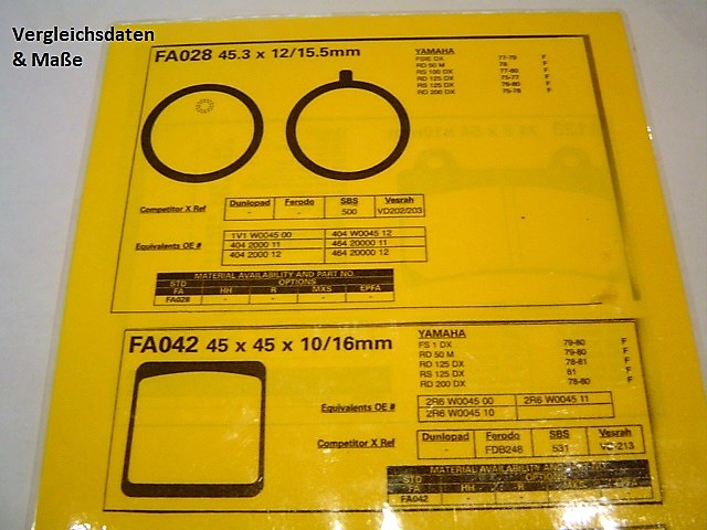 Bremsbeläge Zustand: neu (Lagerware) Marken Bremsbeläge vorn für verschiedene Yamaha RD 50M Baujahre