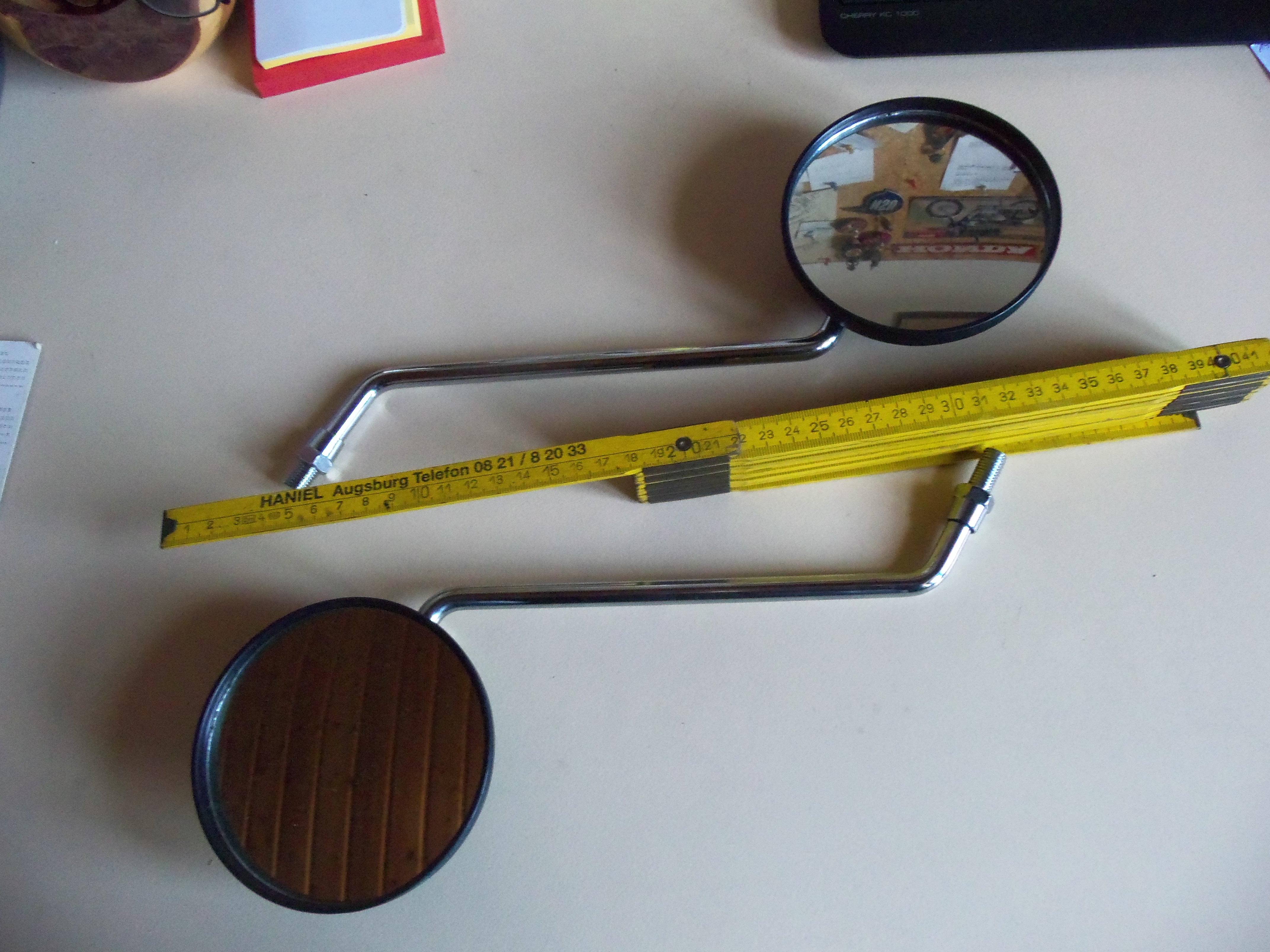 spiegel Farbe/Oberfläche: chrom schwarzu Hersteller: Toyo Original Ersatzteil-Nummer (OEN): 1y1 26290 60 und 1y1 26290 50 Zustand: neu (Lagerware) Spiegel links und rechts vom Erstausrüster Toyo ,Yamaha baut die Spiegel auch nicht selber