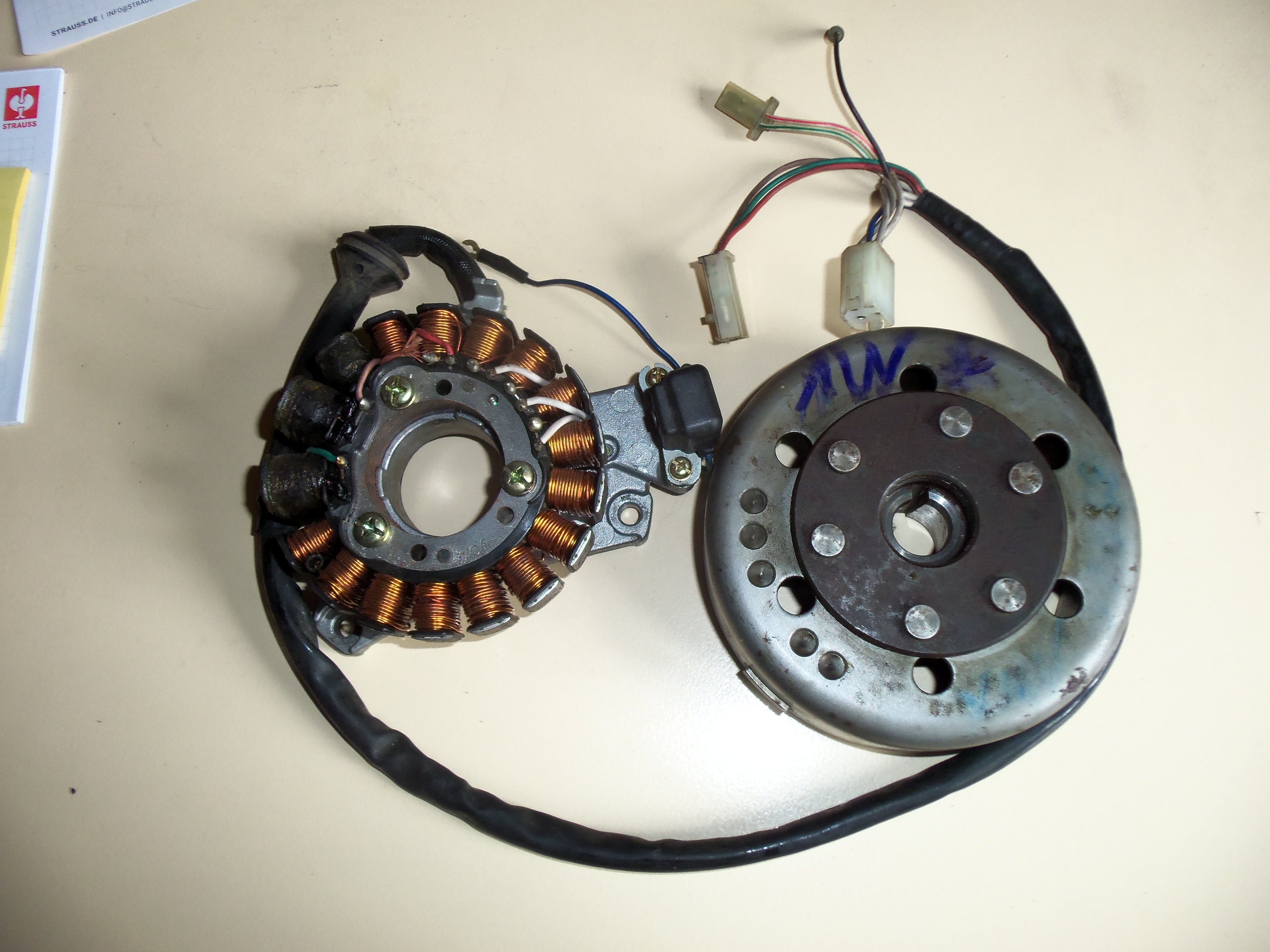 Lichtmaschine Farbe/Oberfläche: silber Hersteller: yamaha Original Ersatzteil-Nummer (OEN): 1UA 85510 50 +1UA 8550 50 Zustand: kaum gebraucht geprüfte Lima incl Rotor für 350LC