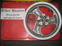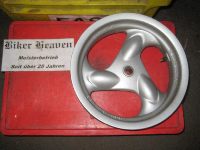 Felge hinten Farbe/Oberfläche: silber Hersteller: Kymco Original Ersatzteil-Nummer (OEN): MA8516 Zustand: normal gebraucht Ordentlicher Zustand, Teil geprüft, Irrtümer vorbehalten, viele weitere Teile am Lager, einfach anrufen oder mailen