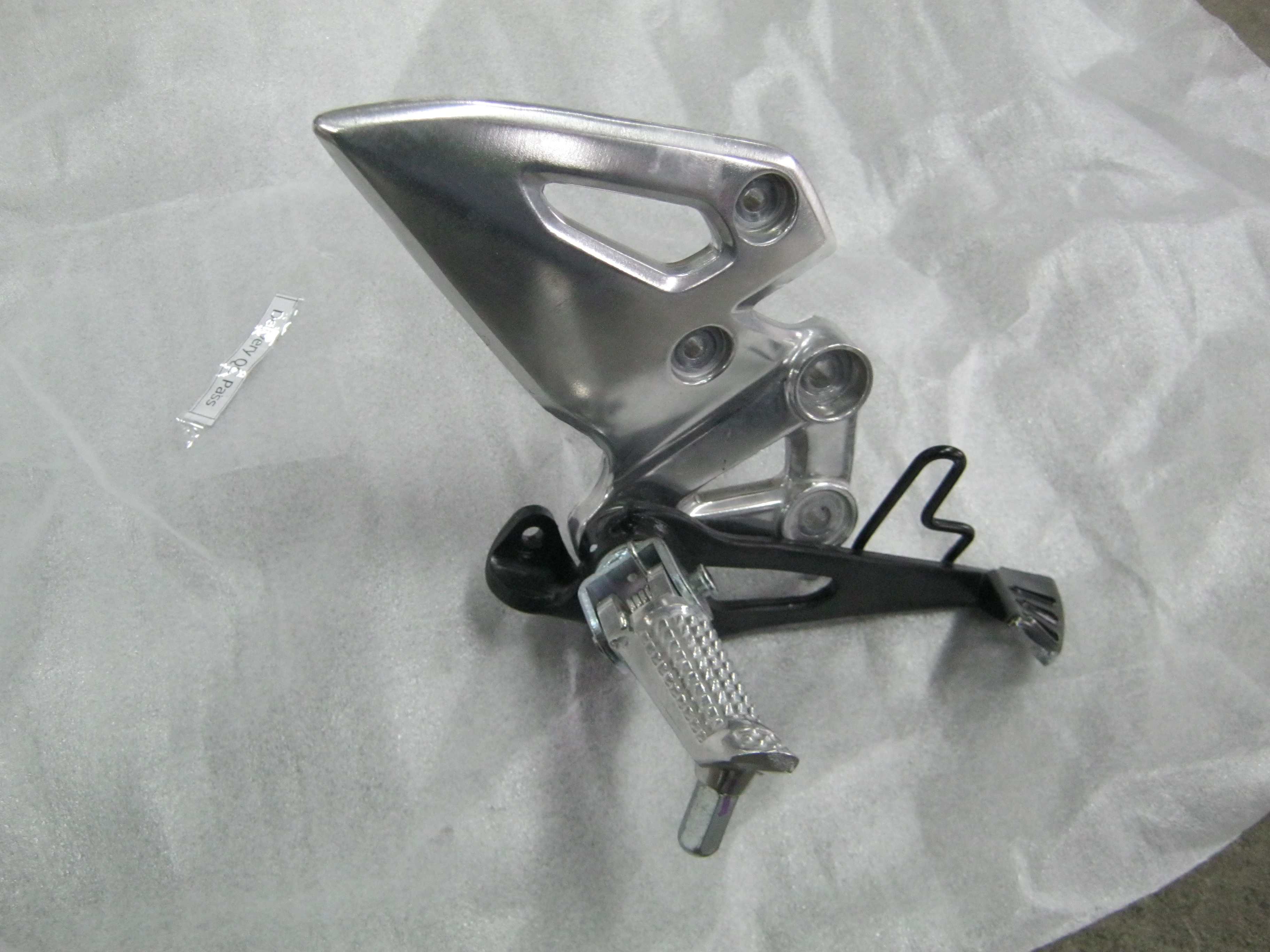 Fussrastenhalter, Fussraste, Original Ersatzteil-Nummer (OEN): 43501-23K10; 43516-35F10 Zustand: normal gebraucht Original Fussrastenaufnachme mit Halter,Fussraste und Fussbremshebel. Fussbremshebel verkratzt und verbogen.
